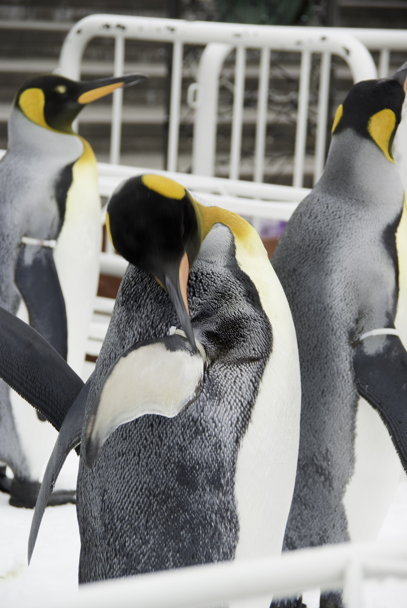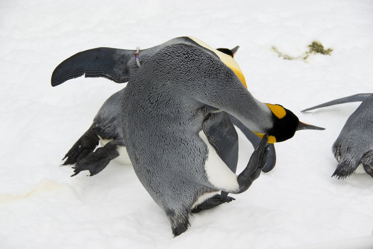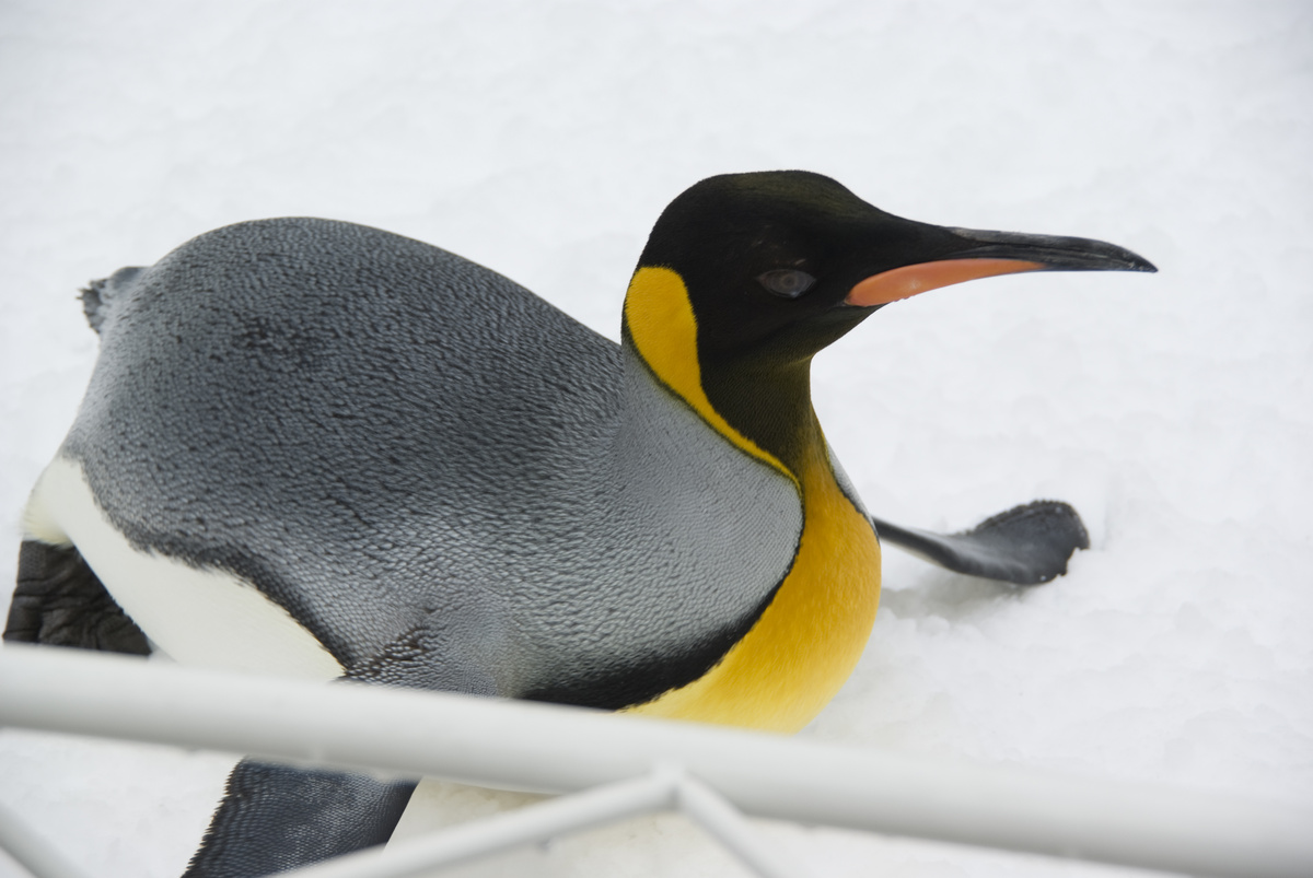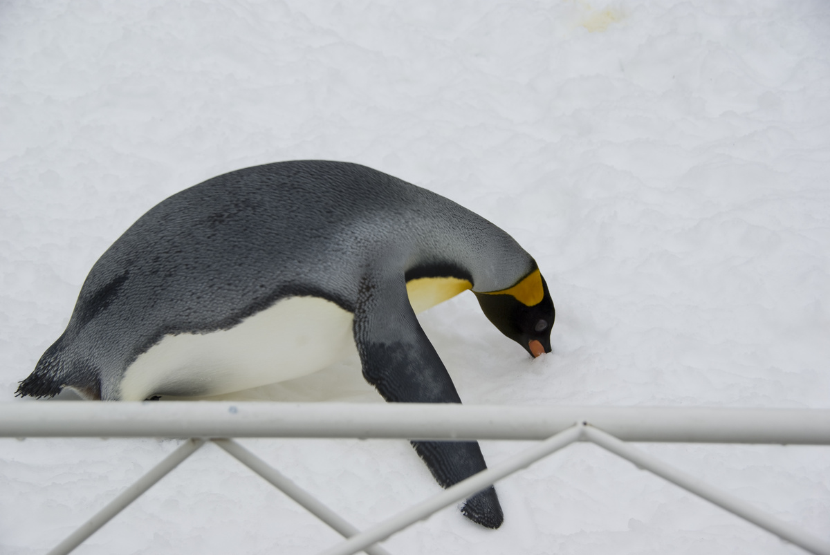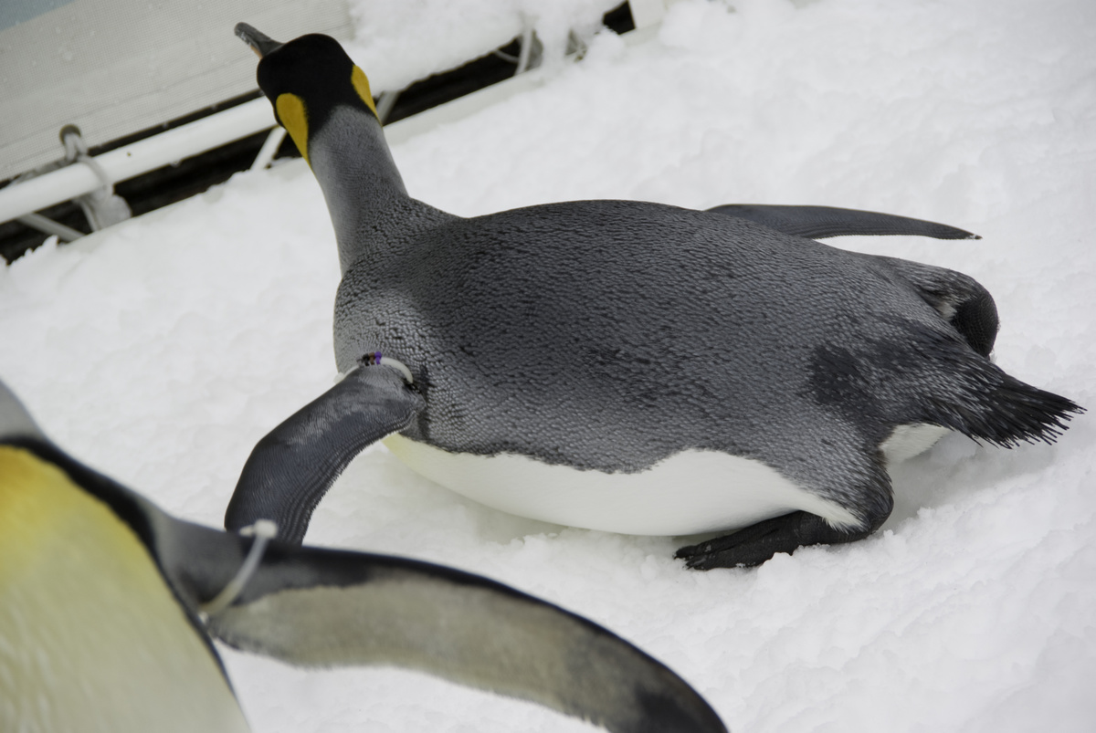 寝っ転がってるペンギンさんは起きる時にくちばしを地面の雪に差し込んで